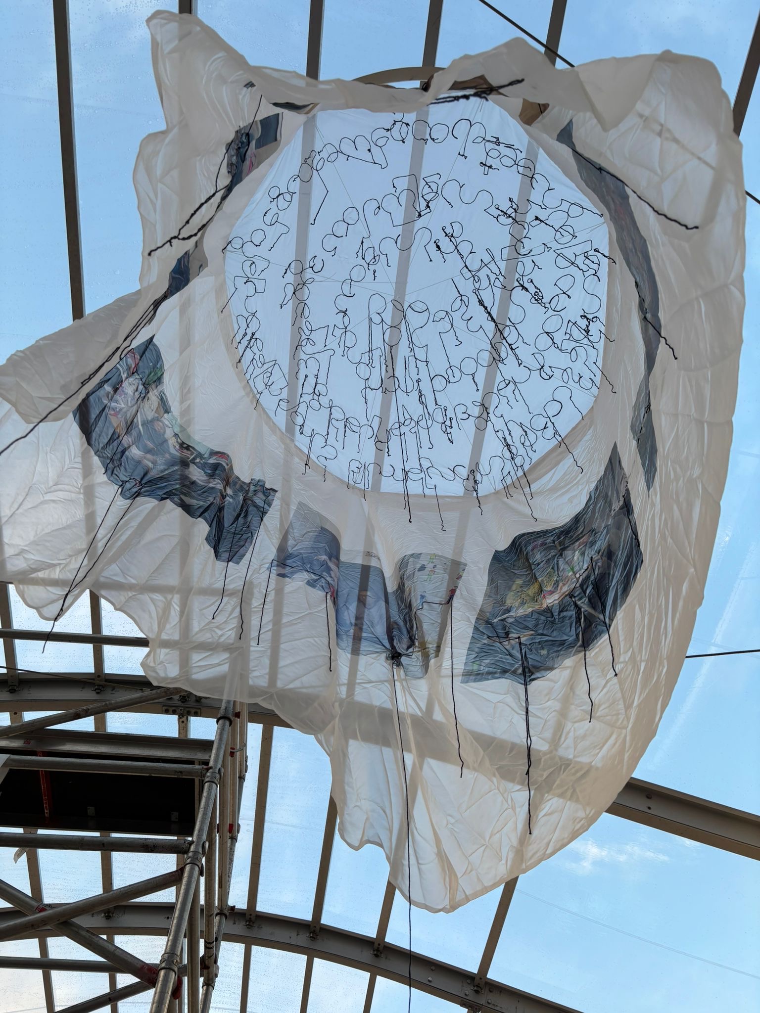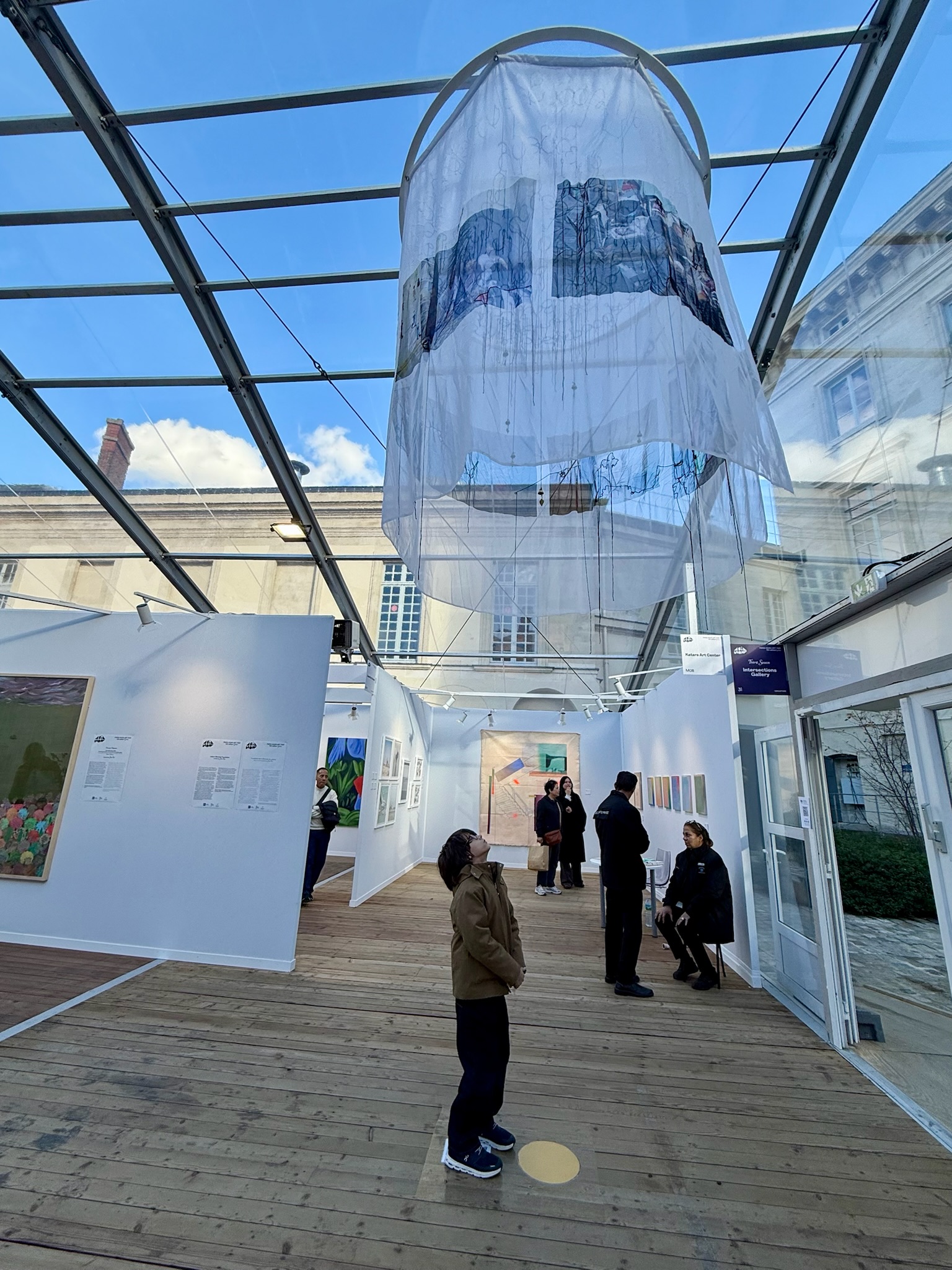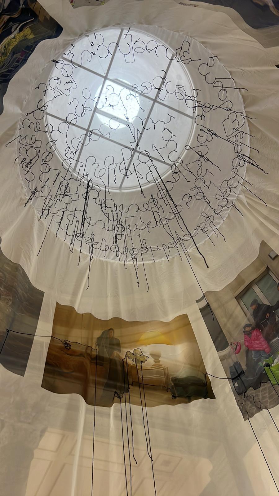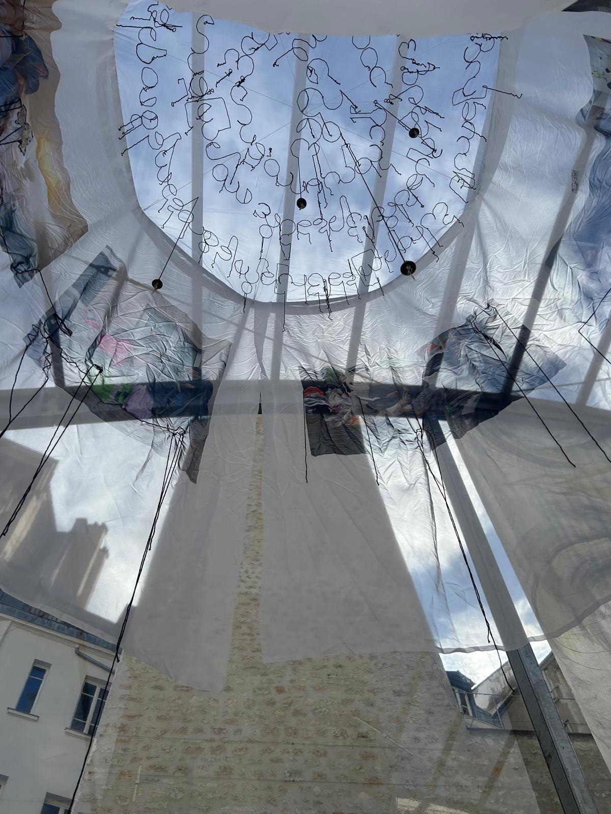 The transparency of the fabric evokes both vulnerability and connection – a home that is no longer physical but emotional and spiritual . The installation invites the viewer to step into this fragile space and reflect on what home means in times of upheaval.