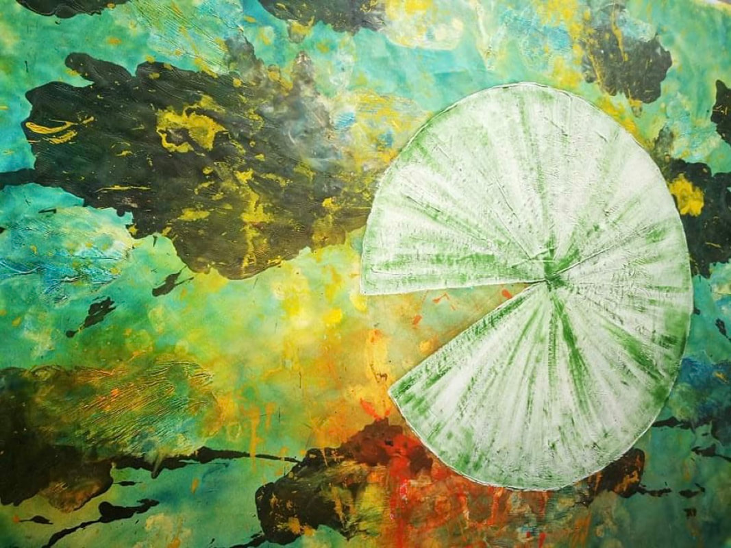 Lotus Leaf celebrates Mother Nature by depicting a huge lotus leaf on a pond, a subject matter which is rooted in Naan Nann’s Buddhist belief. The harmonious juxtaposition of green and orange hues creates a delightful cooling and soothing effect on the viewer. Interestingly, the lotus, which symbolizes serenity, peace, beauty and purity for the Buddhists, is also famous for the health benefits of its leaves which are used in alternative medicine.